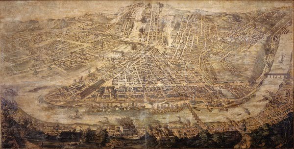 Friday was a very busy day filled with exhibitions and lectures. We started at the Carnegie Museum of Art, where we heard scholarly lectures on natural history illustrations in 19th century museum journals, by Bernadette Callery, and on sheet music covers by Mariana Whitmer, from the Society for American Music at the University of Pittsburgh. While I know a reasonable amount about both subjects, I found the lectures filled with interesting facts and insights. Following, I presented a lecture about one aspect of views of Pittsburgh I noticed while writing Panorama of Pittsburgh, viz. that an awful lot of these prints were simply copied from previously issued prints. This happens everywhere, but seemed particularly common in Pittsburgh.