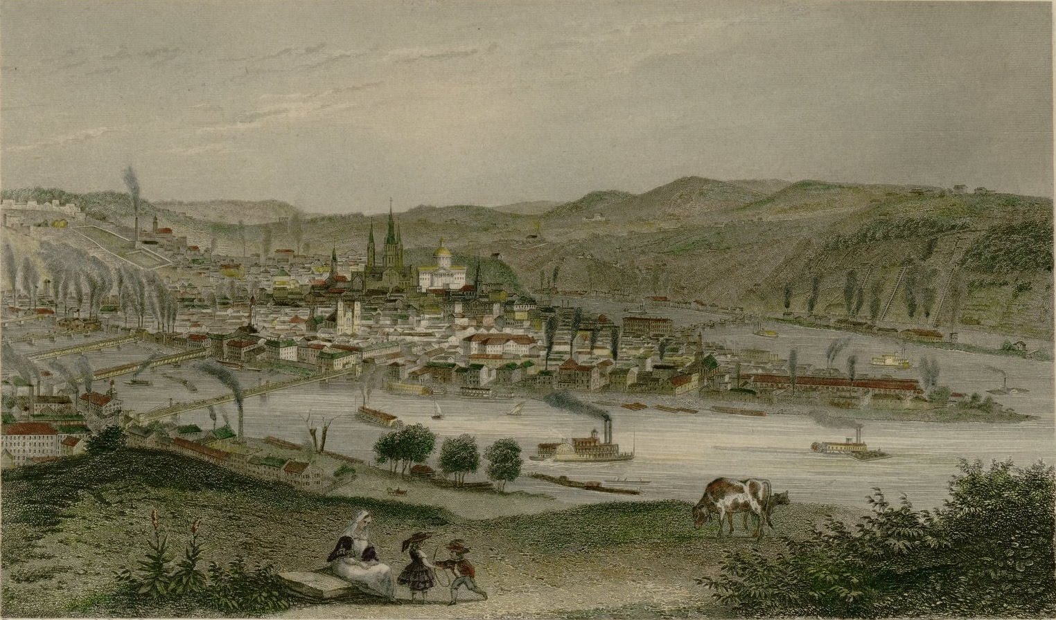 The meeting organizer, Marilyn Bruschi, has put together a varied program, with a series of interesting talks on different print topics, including a presentation I will make based on material from my book. The meeting will also include visits to some of Pittsburgh's great institutions. The meeting will start at the Heinz History Center, where we will see many of the Center's huge collection of prints and photos. This is followed by a stop at the Duquesne Club, a private club which houses a terrific collection of 19th century paintings and the only known copy of James T. Palmatary's 1859 view of Pittsburgh, the largest and most detailed view of the city from the nineteenth century.
