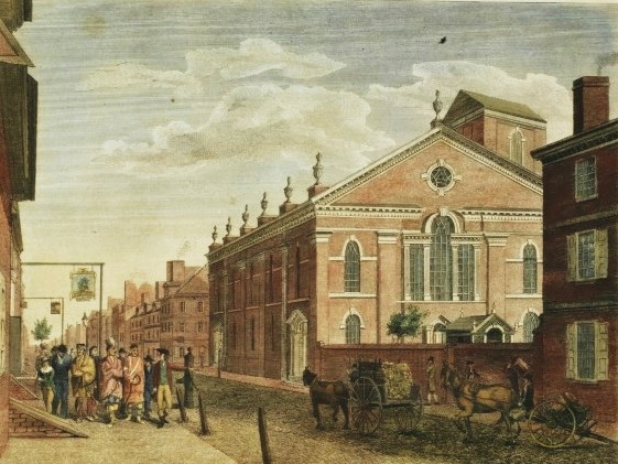 Red Jacket was a Seneca chief and orator who negotiated with the government of the United States after the American Revolution. The Iroquois had sided with the British during the war, so the government insisted that they give up much of their lands in New York. Red Jacket was instrumental in saving what he could of their lands, as determined by the Treaty of Canadaigua in 1794. Prior to the treaty, in 1792, Red Jacket had visited the then U.S. capital, Philadelphia, where Washington presented him with a “peace medal” which was engraved with an image of Washington shaking hands with Red Jacket. This print, after a portrait by Charles Bird King, shows Red Jacket proudly wearing this medal.