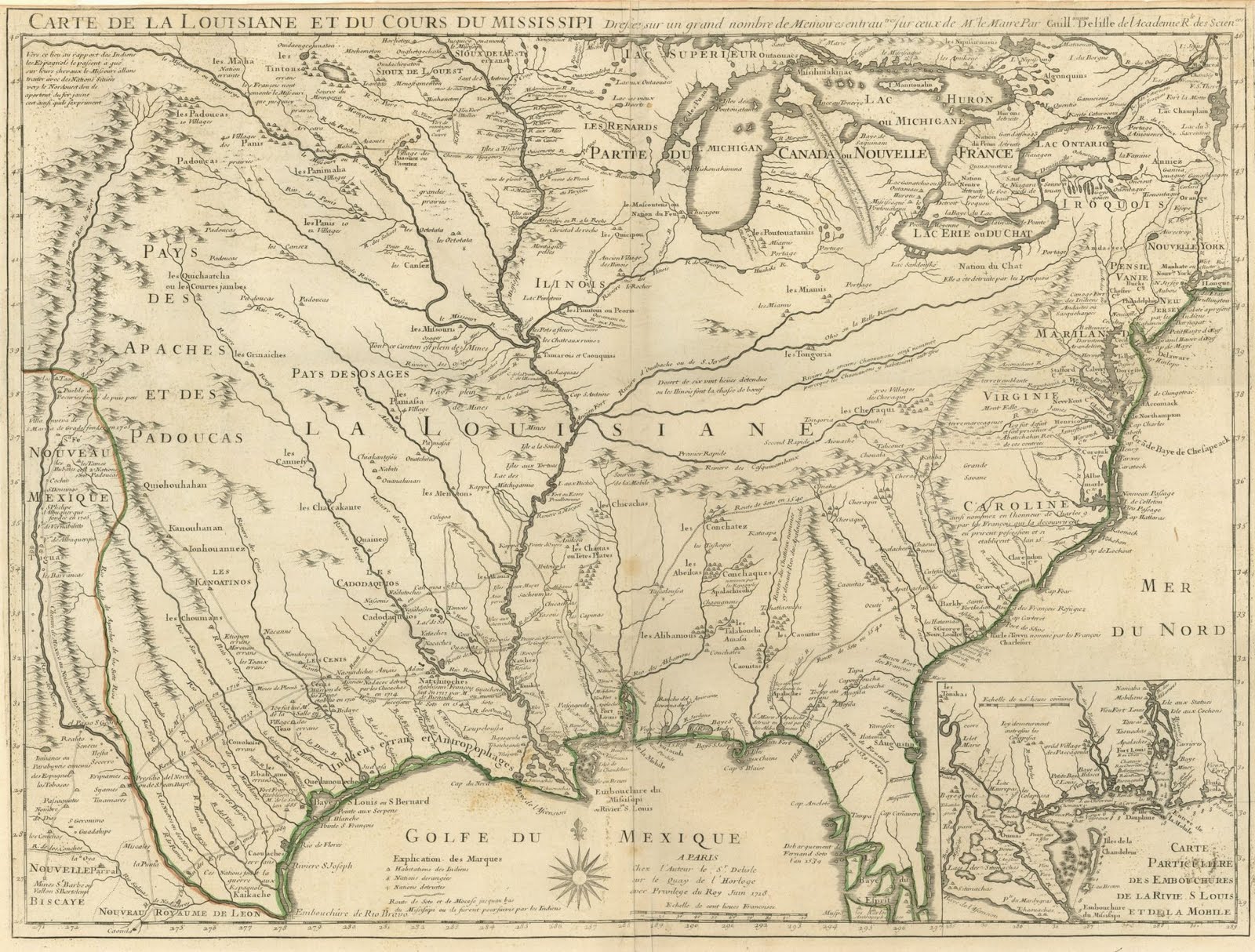 In the first few years of the nineteenth century, Napoleon Bonaparte was involved in much conflict and intrigue in Europe and the French dominions abroad, and he faced imminent war with the British and total financial collapse. Looking for a quick solution for the latter, in 1803 Napoleon sold Louisiana to the United States for essentially 15 million dollars (about 220 million in today’s dollars), the equivalent of less than 3 cents per acre.In this one transaction, the United States essentially doubled its size. The exact border between the Spanish lands in New Spain and Louisiana south of the continental divide were not clear, but that was settled by the Adams-Onis Treaty of 1819. There was also still dispute about the ownership of the lands in the Pacific Northwest. Little was known of Louisiana, so President Jefferson almost immediately sent out an exploring expedition under Meriwether Lewis and William Clark. Early maps were able to show a rough image of this newly acquired U.S. territory, but it wasn’t until the Lewis & Clark information and then later exploring expeditions that accurate details began to become available.